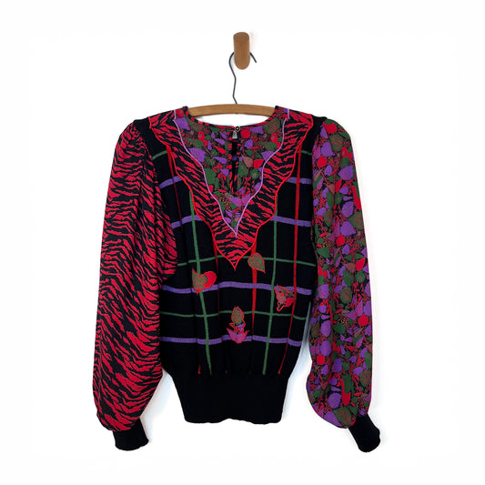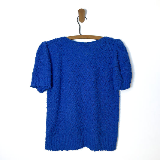 1970s Mademoiselle Bold Blue Knit Short Sleeve Sweater